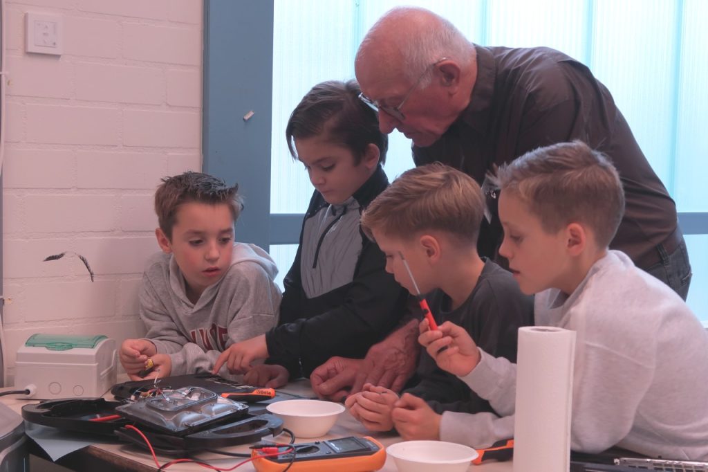 Op 9 oktober 2025 was het een drukte van belang in het Repair Cafe Gemert-Bakel. 15 leerlingen van basisschool de Samenstroom hadden gekozen voor een workshop techniek en waren daarom te gast in het Repair Cafe.